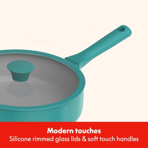 - TRENDY & PRACTICAL DESIGN: Our modern, colorful pots and pans bring a stylish touch to your kitchen, while interior measurement markings, secure silicone-rimmed lids, and stay-cool comfort-grip handles add functionality to help you cook like a pro